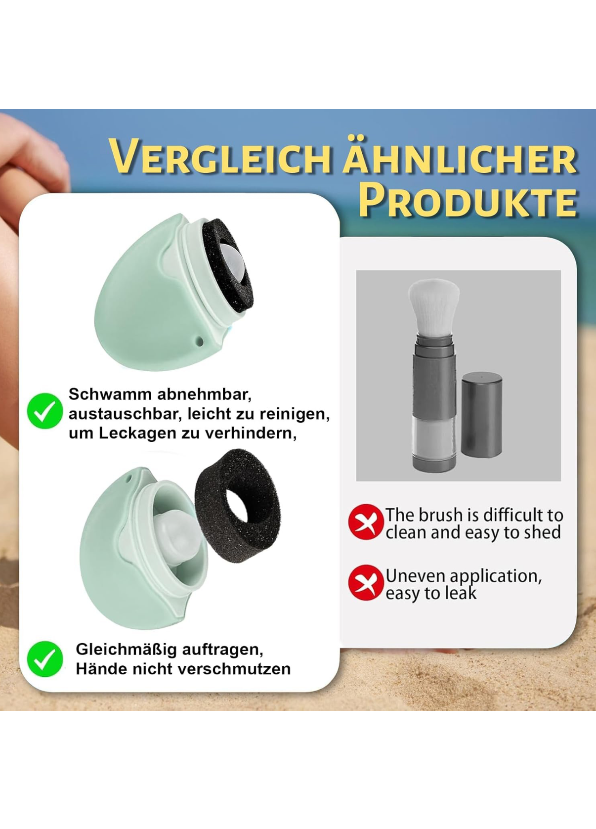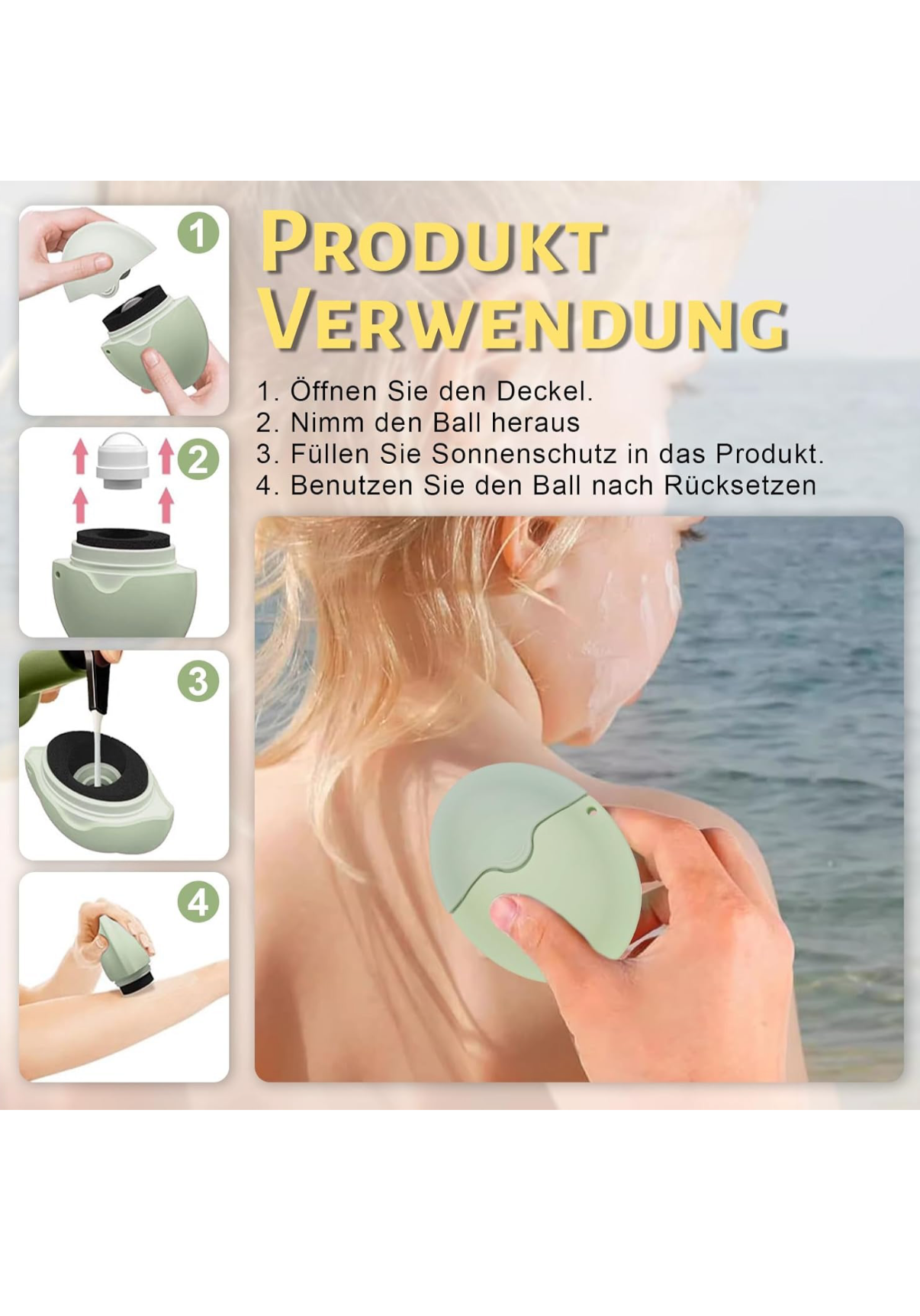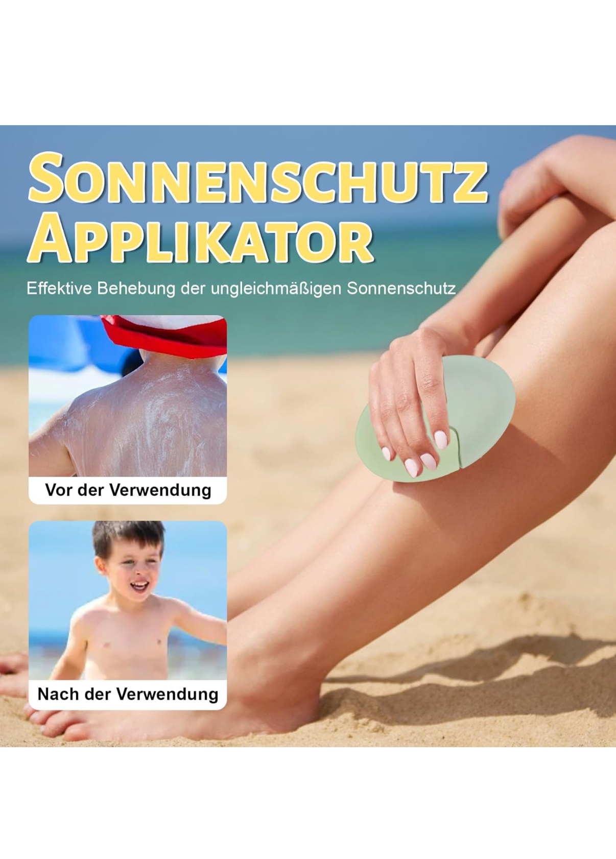 Mit diesem innovativen Sonnencreme-Applikator trägst du Sonnenschutz einfach, schnell und hygienisch auf – perfekt für Rücken, Schultern, Gesicht und mehr.